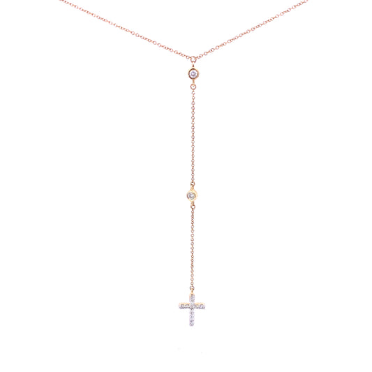 14K Gold Diamond Cross Drop Pendant Lariat Necklace