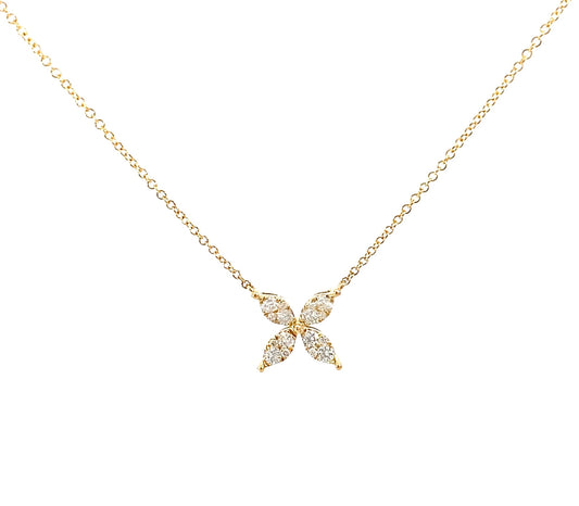14K Solid Gold Flower Pendant Necklace with Natural Diamonds