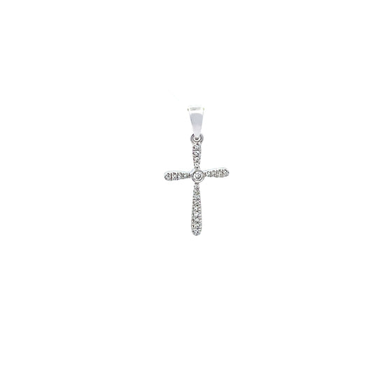 14K Solid White Gold Diamond Cross Pendant