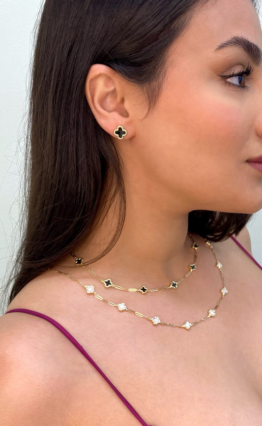 14K Solid Yellow Gold Clover Earrings