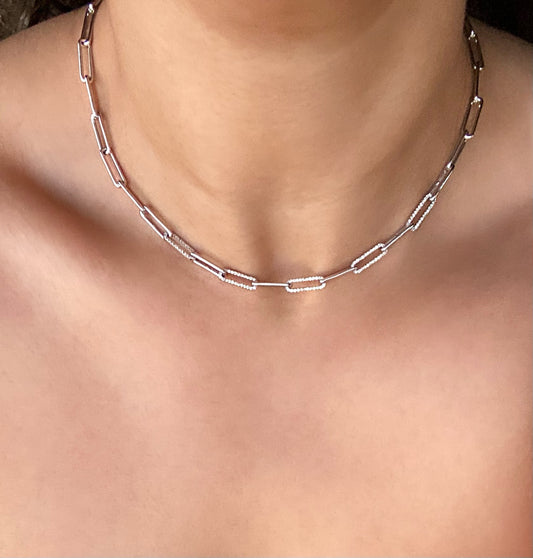 14K Gold Paperclip Diamond Necklace