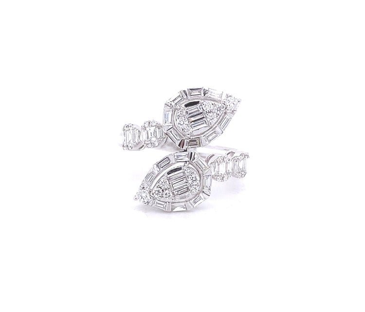 18K White Gold Pear Shape and Oval Diamond Ring