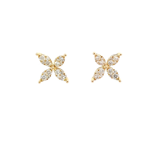 Trendy 14K Solid Gold Diamond Flower Eearrings