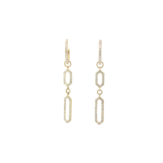 Sparkling Enamel Heart Long Diamond Hoops Drop Earrings