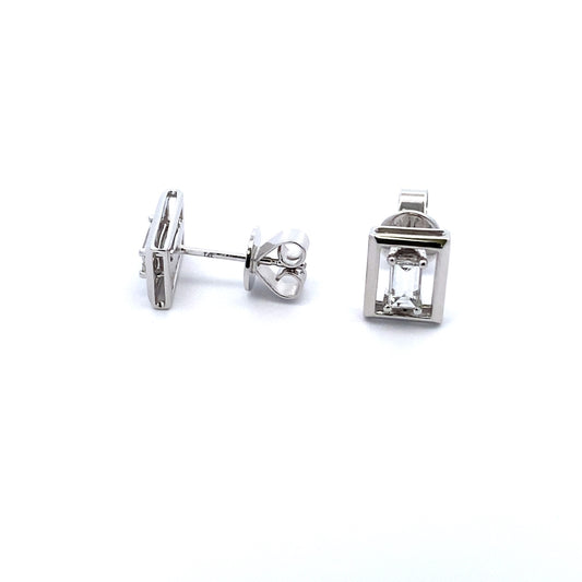 Trendy 14K White Gold Emerald Cut Diamond Stud Earrings