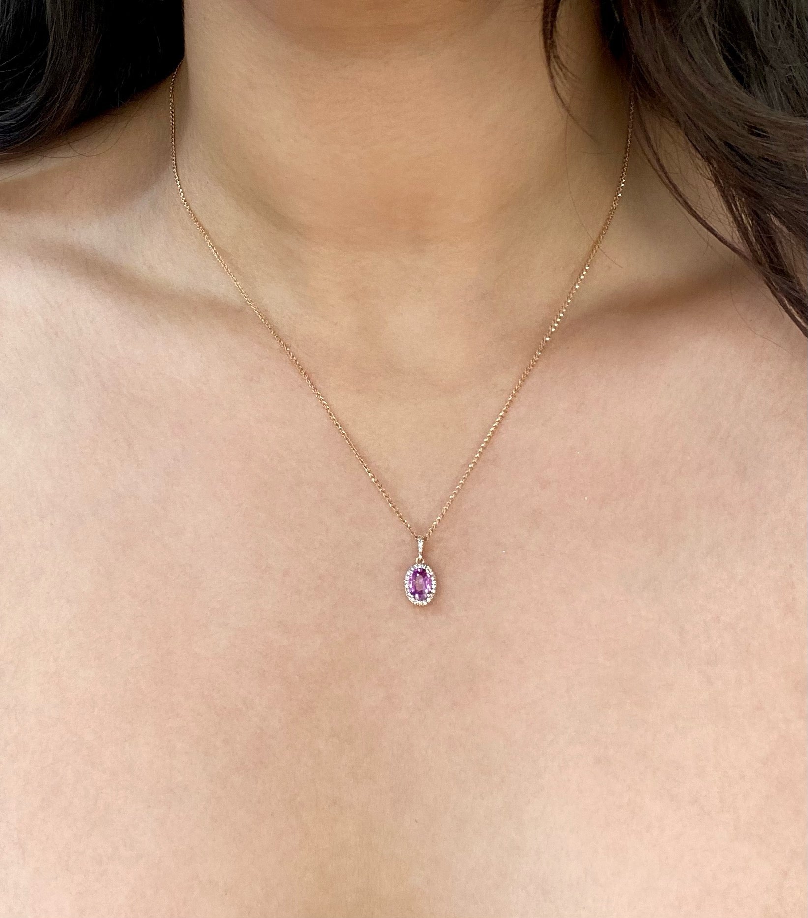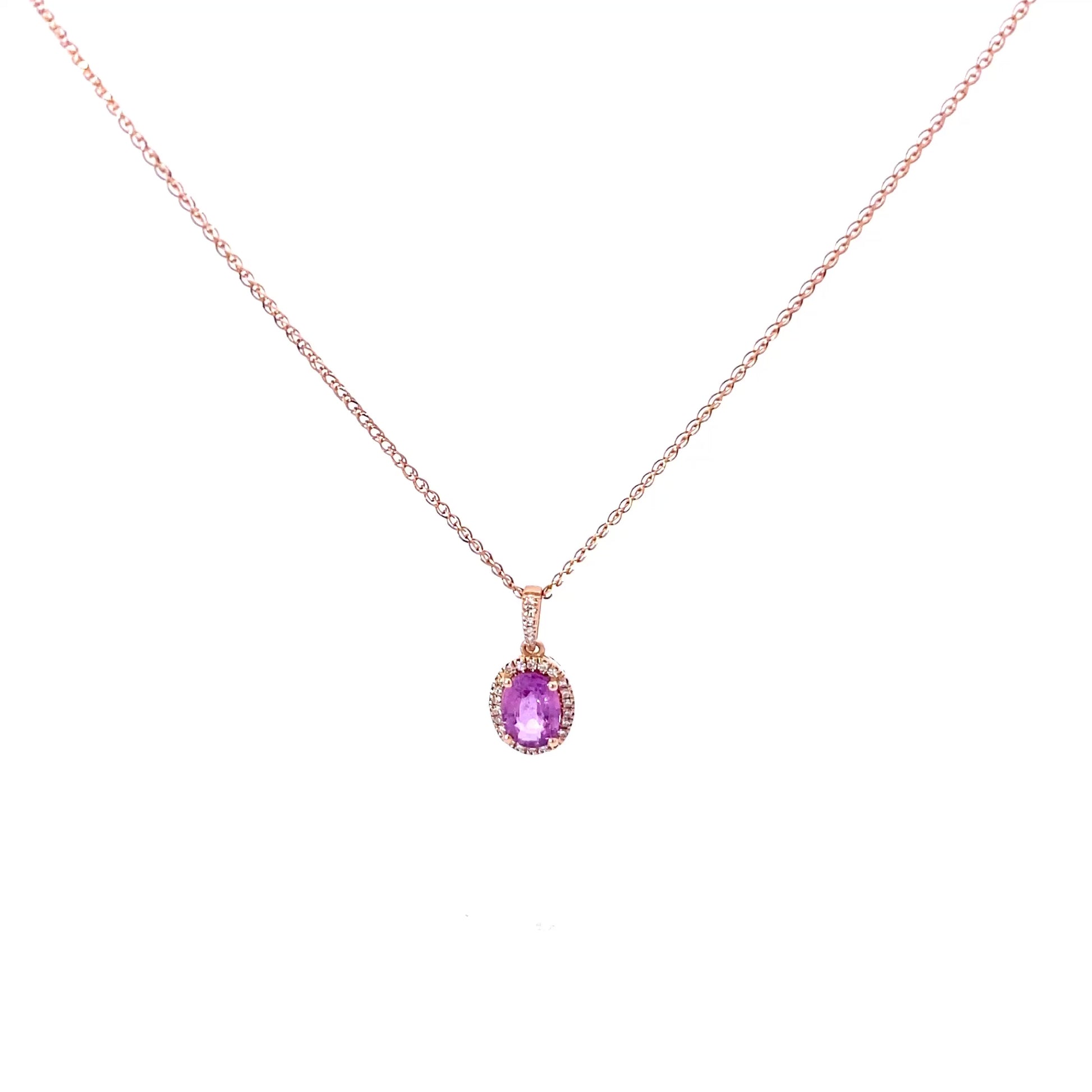 14K Rose Gold Oval Pink Sapphire and Diamond Pendant Necklace